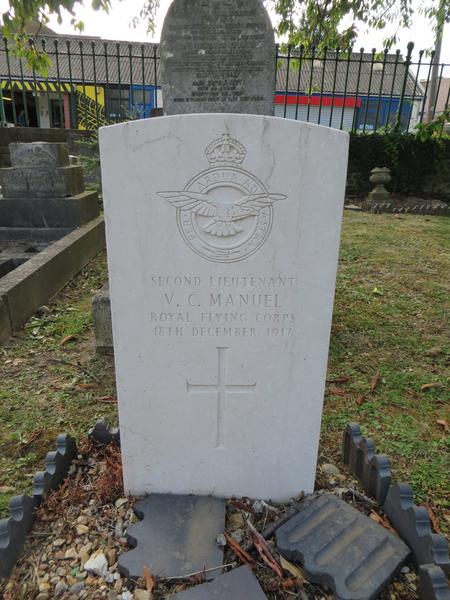 There are a few pieces of conflicting information in relation to Vane Manuel – On the Casualty Card for his accident / death, he is shown as being in 44 Squadron, was flying a Sopwith F.1 Camel and was killed at Chadwell Heath.