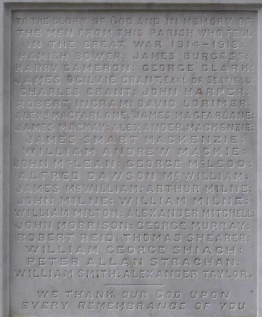 Boharm Old Churchyard War Memorial, Banffshire Burgess, James, Corporal, 202728, 7th Seaforth HighlandersMcWilliam, Alfred Dawson, Private, S/7417, 1st Gordon HighlandersMcWilliam, James, Private, 5/1562A, 2nd Wellington Regiment, N.Z.E.F.Reid, Robert, Corporal, 7630, 1st Gordon Highlanders Share this: Share on X (Opens in new window) X Share on Facebook (Opens in new window) Facebook Like Loading...
