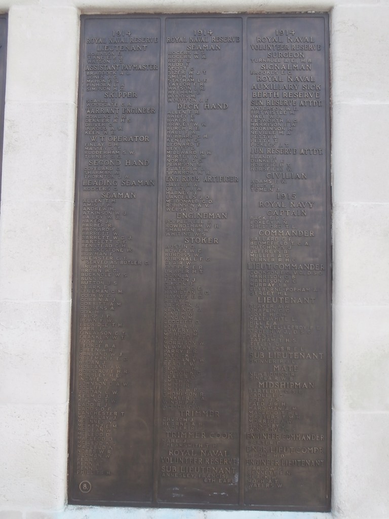 On 30 December 1915 the Natal was with the 2nd Cruiser Squadron of the Grand Fleet anchored in the Cromarty Firth, Scotland. On that day, Eric had organised a film party and invited the wives and children of officers, civilian friends, and nurses from the hospital ship Drina to attend. Fortunately (as it turned out) his children were unable to attend as they had the flu. The party had just started when, about 3.20pm, smoke was spotted near the ship’s mainmast. This was followed shortly by flames and then an explosion. Within minutes the ship began to heel over to port and then capsized with the loss of 422 lives. Eric and his wife’s bodies were never recovered and he was honoured and remembered on the Chatham Naval Memorial, Kent.