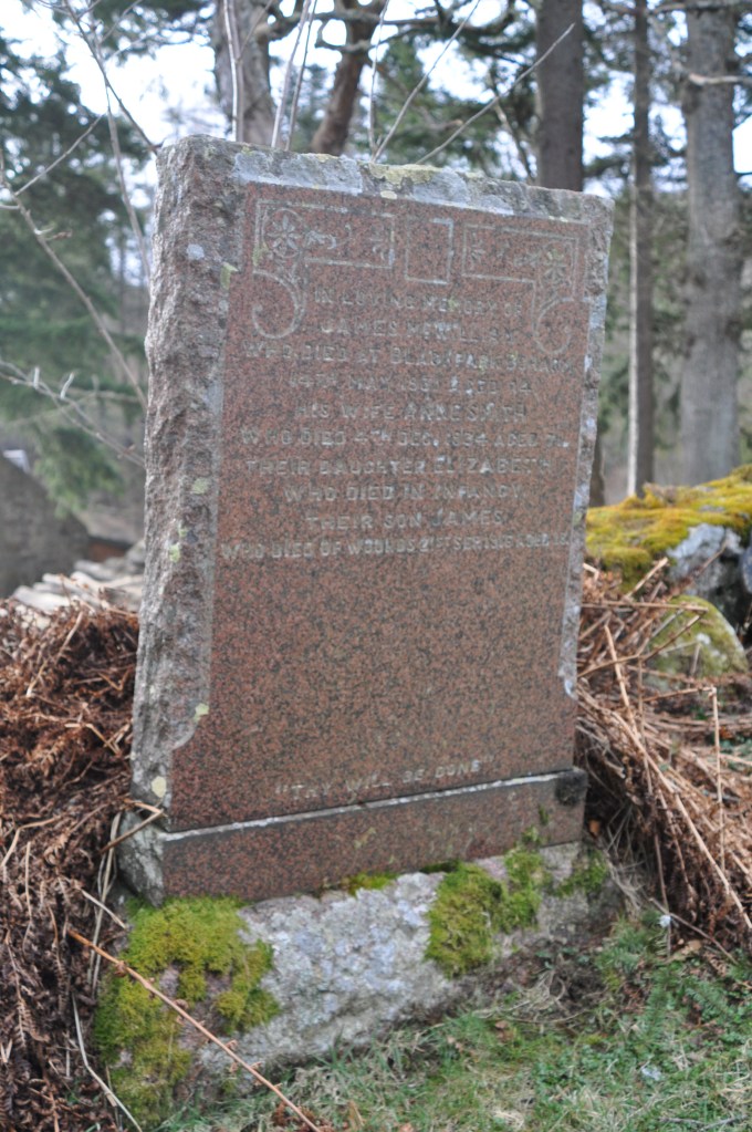 The family gravestone at Boharm Churchyard reads:- IN LOVING MEMORY OF JAMES MCWILLIAM WHO DIED AT BLACKPARK, BOHARM, 14TH MAY 1931 AGED 74. HIS WIFE ANNE SMITH WHO DIED 4TH DEC. 1934 AGED 71. THEIR DAUGHTER ELIZABETH WHO DIED IN INFANCY. THEIR SON JAMES WHO DIED OF WOUNDS 21ST SEP. 1916 AGED 23. “THY WILL BE DONE.”
