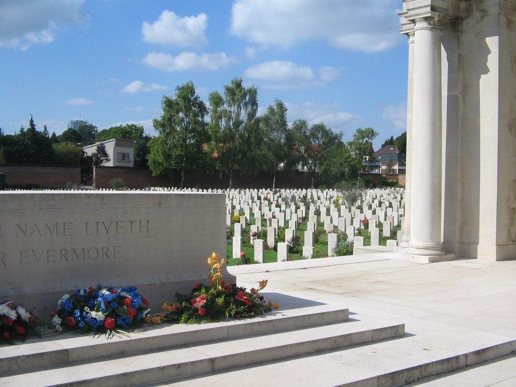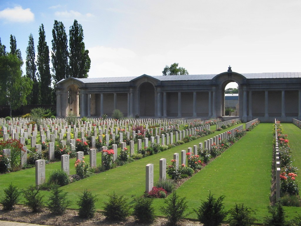 The Commonwealth section of the Faubourg D’Amiens Cemetery was begun in March 1916, behind the French military cemetery established earlier. It continued to be used by field ambulances and fighting units until November 1918. The cemetery was enlarged after the Armistice when graves were brought in from the battlefields and from two smaller cemeteries in the vicinity.