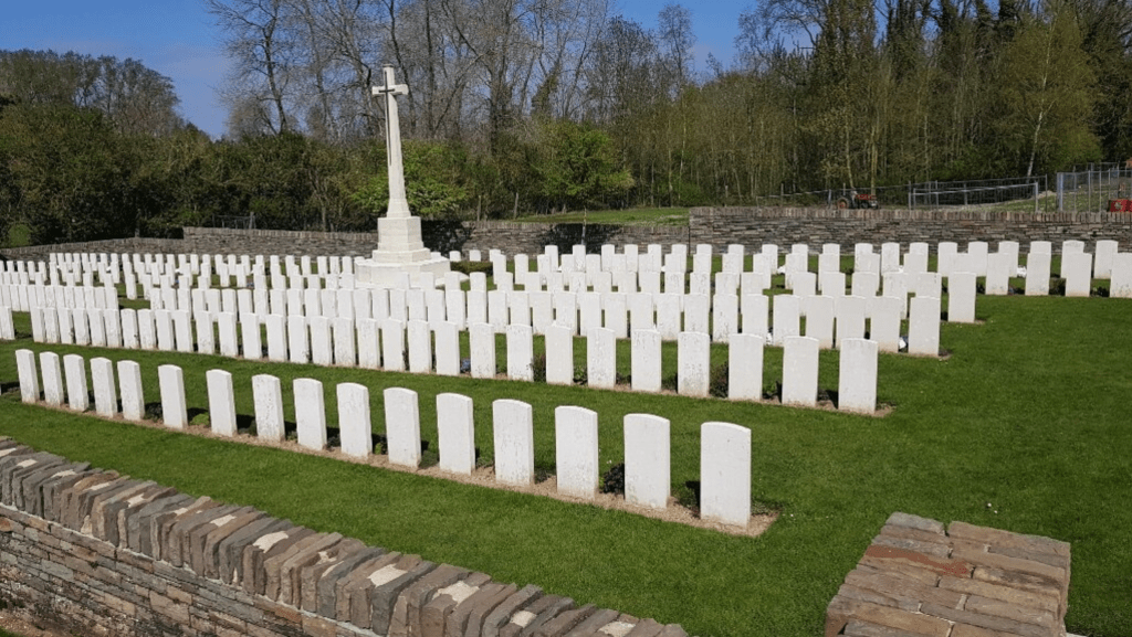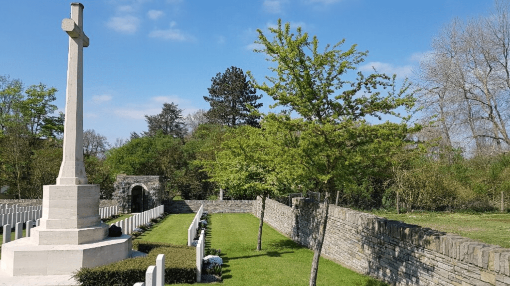 Fampoux village was taken by the 4th Division (passing through the 9th (Scottish) Division) on 9 April 1917. It remained close behind the Allied front line, but part of it was lost on 28 March 1918 during the German advance. The village was cleared by the 51st (Highland) Division on 26 August 1918. The cemetery was begun in June 1917 when a numbers of graves of April and May were brought in from the battlefield It was used until March 1918 and two further burials were made in October 1918. In addition to the 9th and 51st Division, the 15th (Scottish) Division fought in the area, and over half the graves are those of soldiers of Scottish regiments. Level Crossing Cemetery contains 405 burials and commemorations of the First World War. 29 of the burials are unidentified and a special memorial commemorates one casualty believed to be buried in this cemetery. The cemetery was designed by Sir Reginald Blomfield.