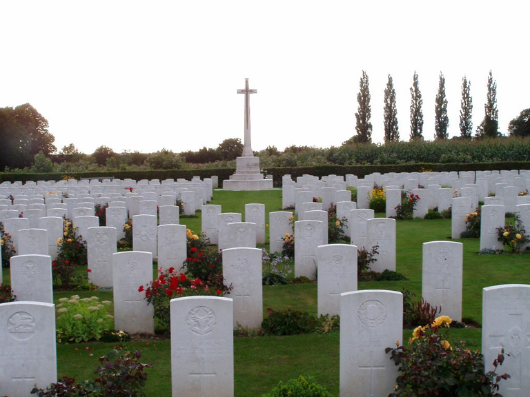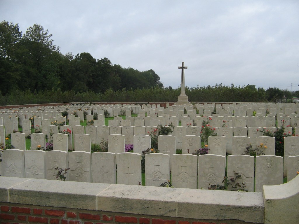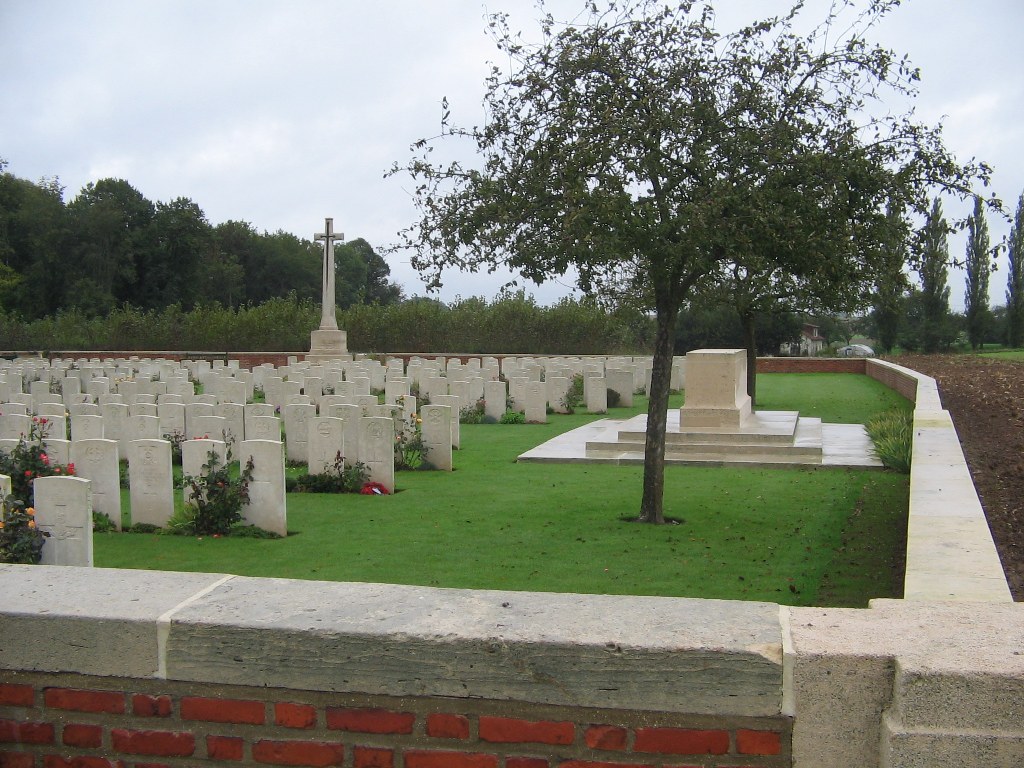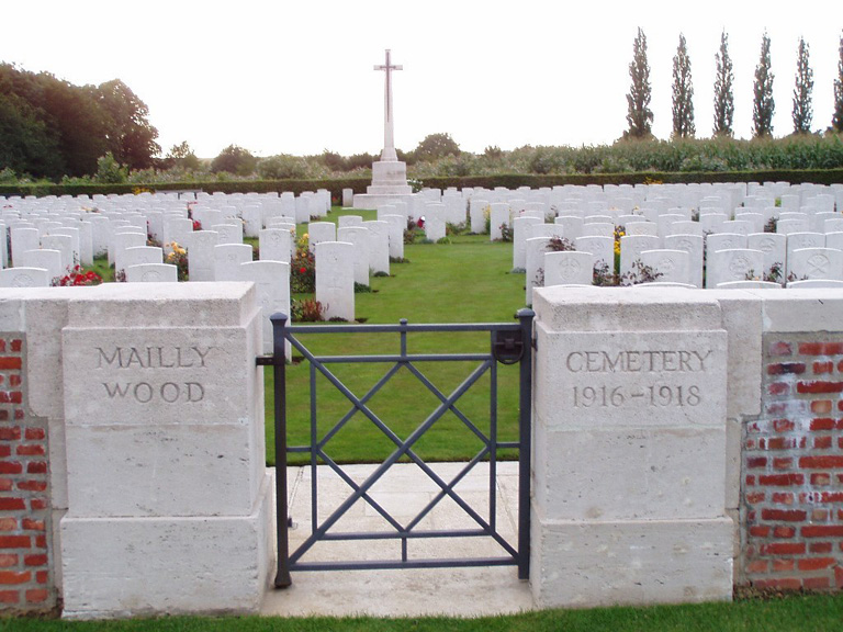 Mailly-Maillet was within the line taken over from the French in the summer of 1915, and several Commonwealth cemeteries were made in the commune. Mailly Wood Cemetery was begun with the burial of thirteen men of the 2nd Seaforth Highlanders who died on 25 June 1916, and in November 1916, the 51st (Highland) Division buried in it following the capture of Beaumont Hamel. Thereafter, the cemetery was little used until April-August 1918, when the German attack on Amiens brought the front line very close, and further burials were made by the 12th Division (in May) and the 21st (in August), among others. After the Armistice graves from the battlefields immediately north-east of the village were brought into the cemetery, and 30 graves from MAILLY MAILLET MILITARY CEMETERY in the village itself. The cemetery now contains 702 burials and commemorations of the First World War. 60 of the burials are unidentified and there are special memorials to two casualties whose graves in the cemetery could not be found, and to six whose graves in the military cemetery were destroyed by shell fire. The cemetery was designed by Sir Reginald Blomfield. ©CWGC