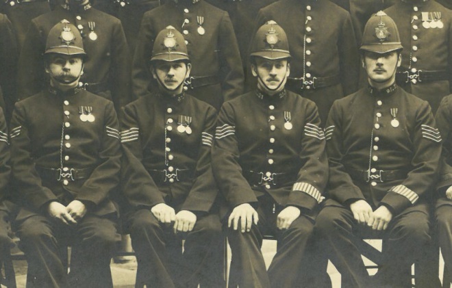 Police Officers Metropolitan Police C.1911 This ‘Group’ is to remember those individuals who were employed as Police Officers prior to the Great War. Alcock, Louis Augustus, Private, 8421, 2nd Durham Light Infantry Wilson, George, Private, 13934, 2nd Scots Guards Share this: Click to share on X (Opens in new window) X Click to share on Facebook (Opens in new window) Facebook Like Loading...