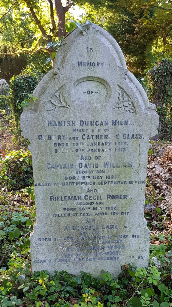 He was laid to rest at New Southgate Cemetery, Barnet, London in a family lair of his uncle (mothers brother), where two of his cousins, who also died in the Great War are honoured. They are:-