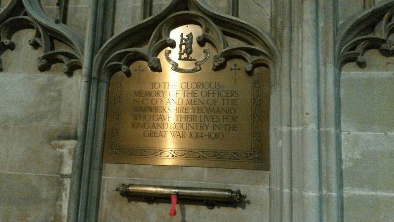 - Warwickshire Yeomanry Memorial, St Mary’s Church, Warwick, Warwickshire.